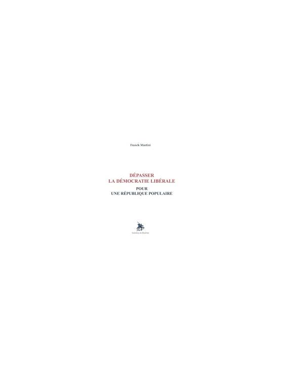 Franck Martini interroge les postulats fondamentaux du libéralisme - sa conception de l'homme, de la liberté et de l'organisation sociale - et plaide pour une refondation du projet démocratique. Par l'esquisse d'une République populaire, l'auteur appelle à une rupture avec l'ordre établi et à la réaffirmation d'une souveraineté politique réelle et substantielle.